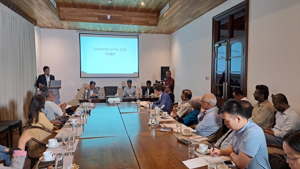 NEXUS hosted the 2nd in the series of public policy dialogues on 19th February under the theme “Budget 2025- Economic Realities Vs Political Realities”, moderated by Shiran Ilanperuma with panelists Dhananath Fernando (CEO, Advocata Institute) and Bram Nicholas (Economist & COO,ETIS Lanka) speaking of different aspects of the proposed budget. While Dhananath pointed out that economic growth demands dismantling outdated trade regulations, rethinking labor policies, and confronting a looming pension crisis fueled by state-sector inefficiencies, Bram challenged the conventional crisis narratives. He argued that inflation stems less from “printing money” and more from supply-side failures.